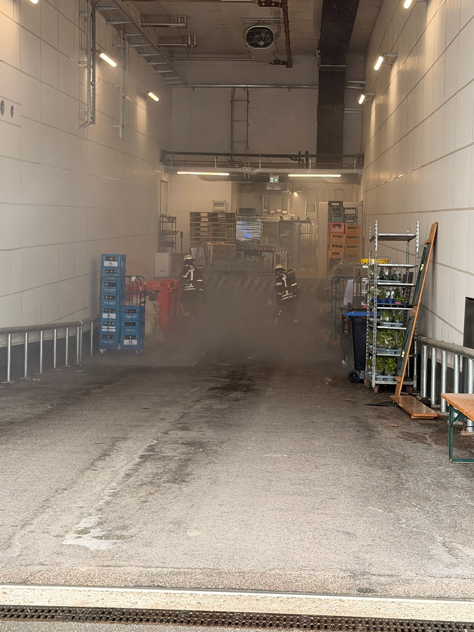 Vor Ort stellte sich heraus, dass eine defekte Kälteanlage durch CO2 Austritt zur Verrauchung eines Raumes geführt hatte.